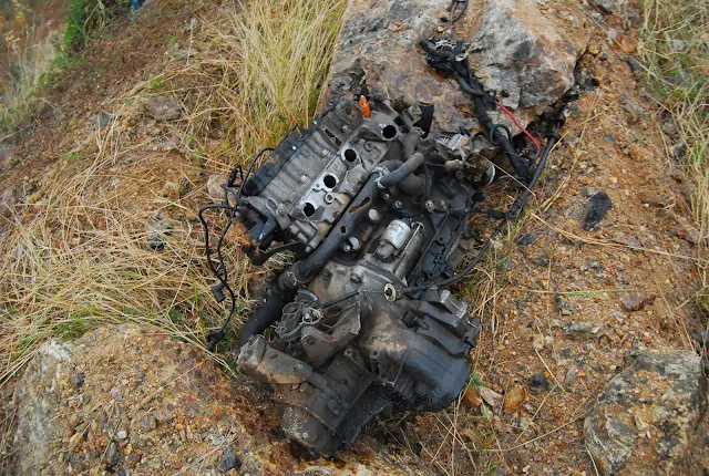 A violência do impacto foi tanta que o motor do Vectra foi lançado para fora do veículo.