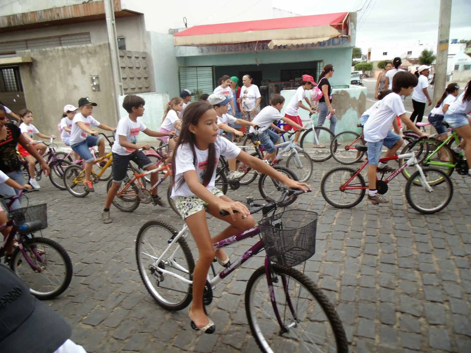 a Escola Paraíso do saber realizou um passeio ciclístico pelas ruas da cidade,